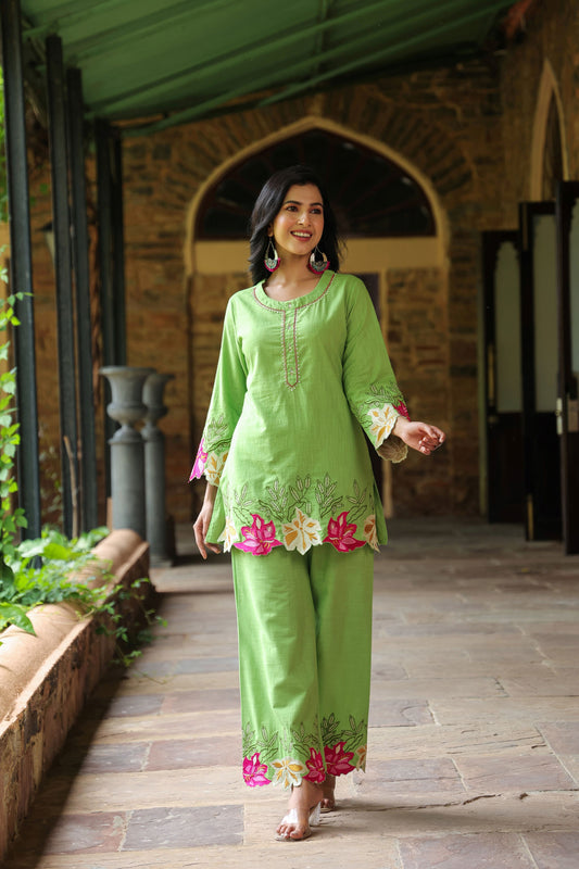 Pin-Thrust Handwork Green Printed Co-ord Sets
