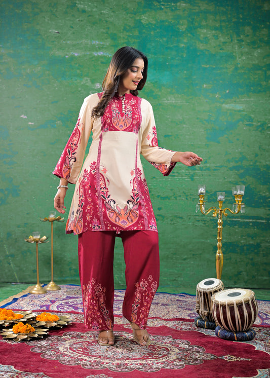Off-White Magenta Digital Print Handwork Co-ord Set