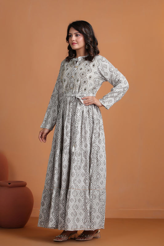 Grey Mirror-Work Flair Gown