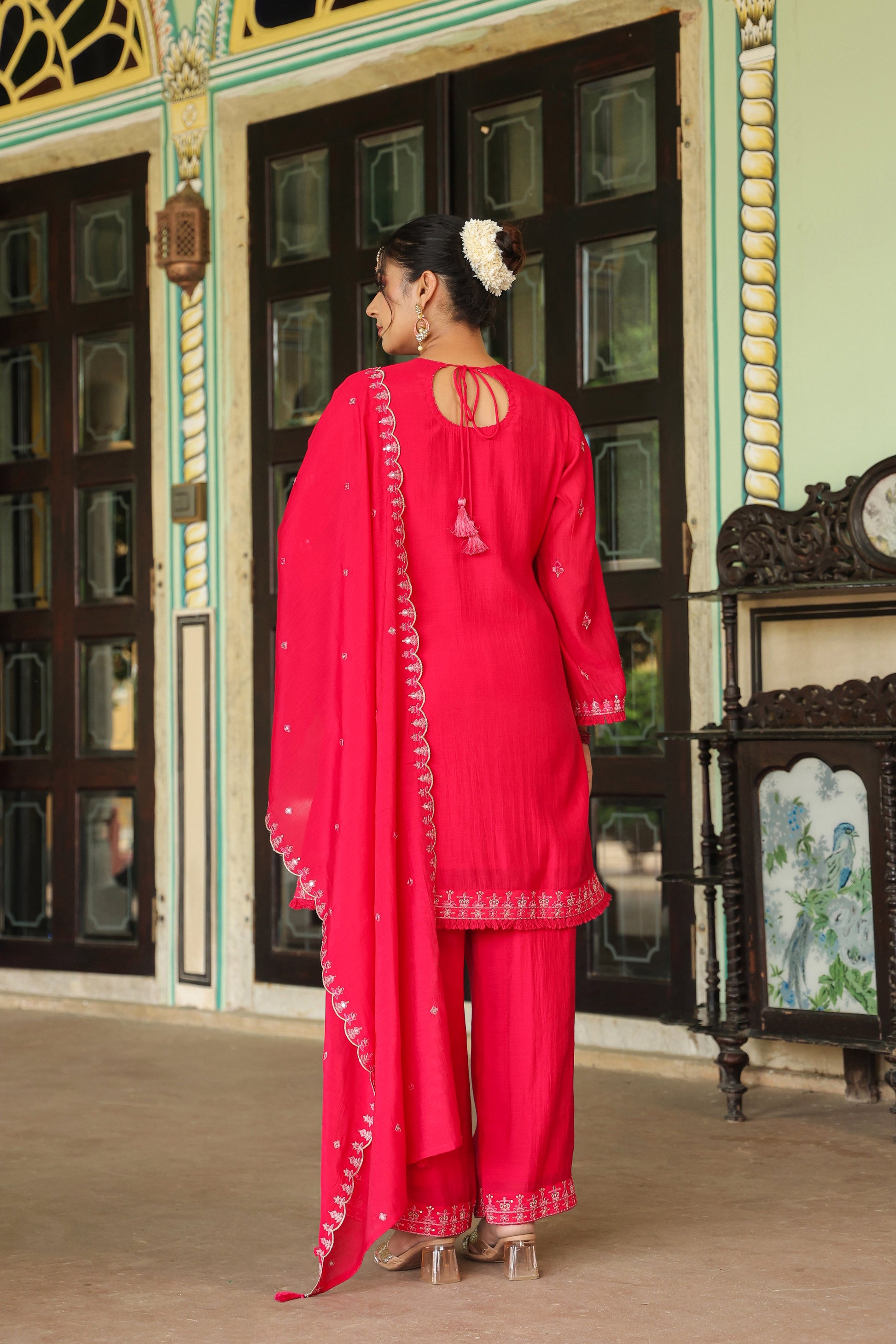 Fuchsia Pink Embroidered 3-Pcs Suit Set