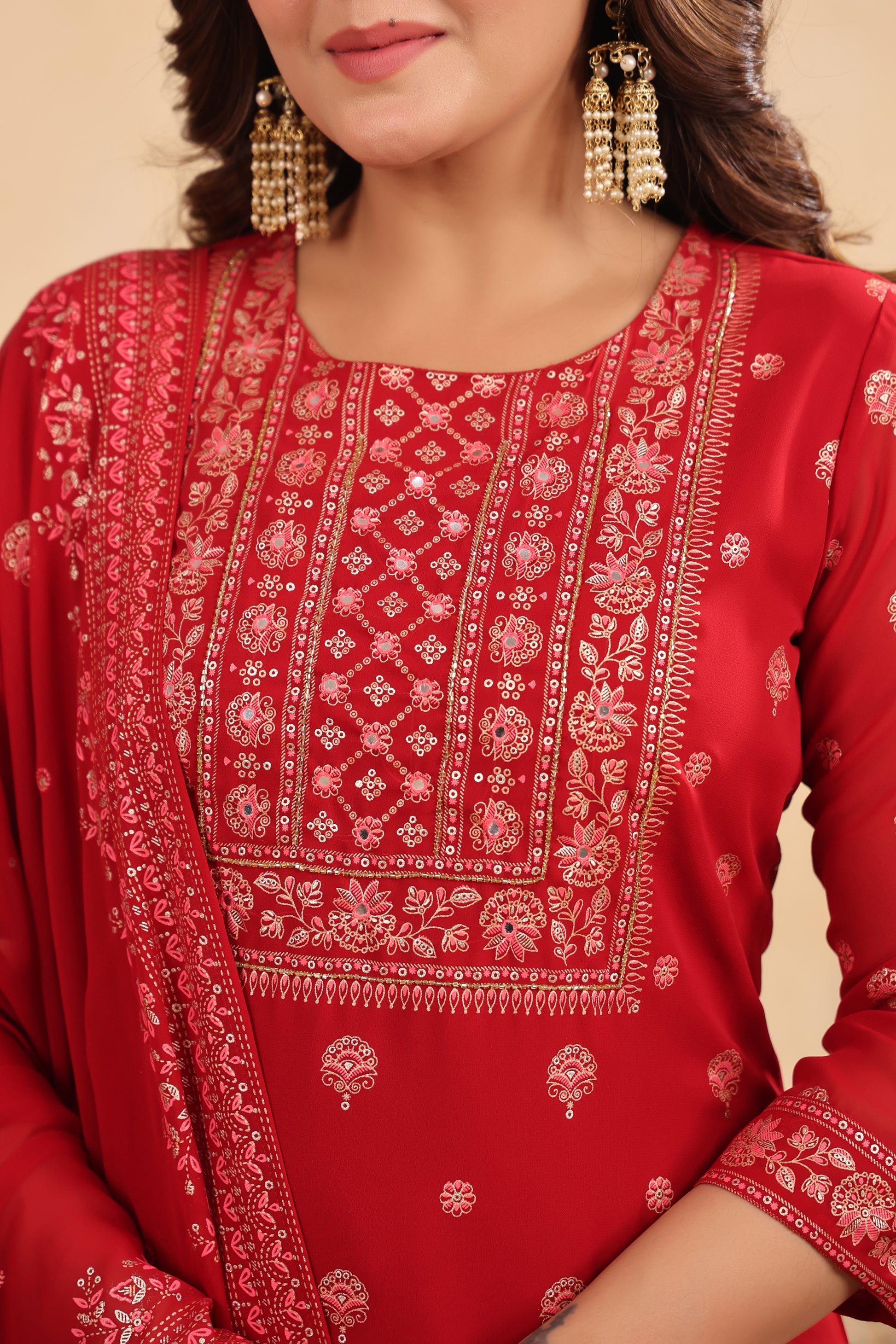 Maroon Red Georgette Handwork 3-Pcs Suit Set