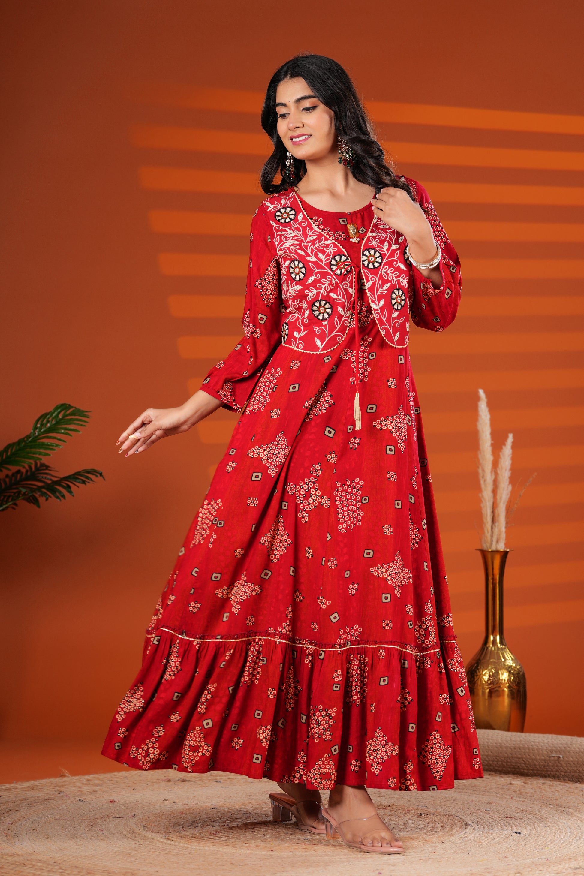 Handwork Flair Gown With Frill And Embroidered Jacket